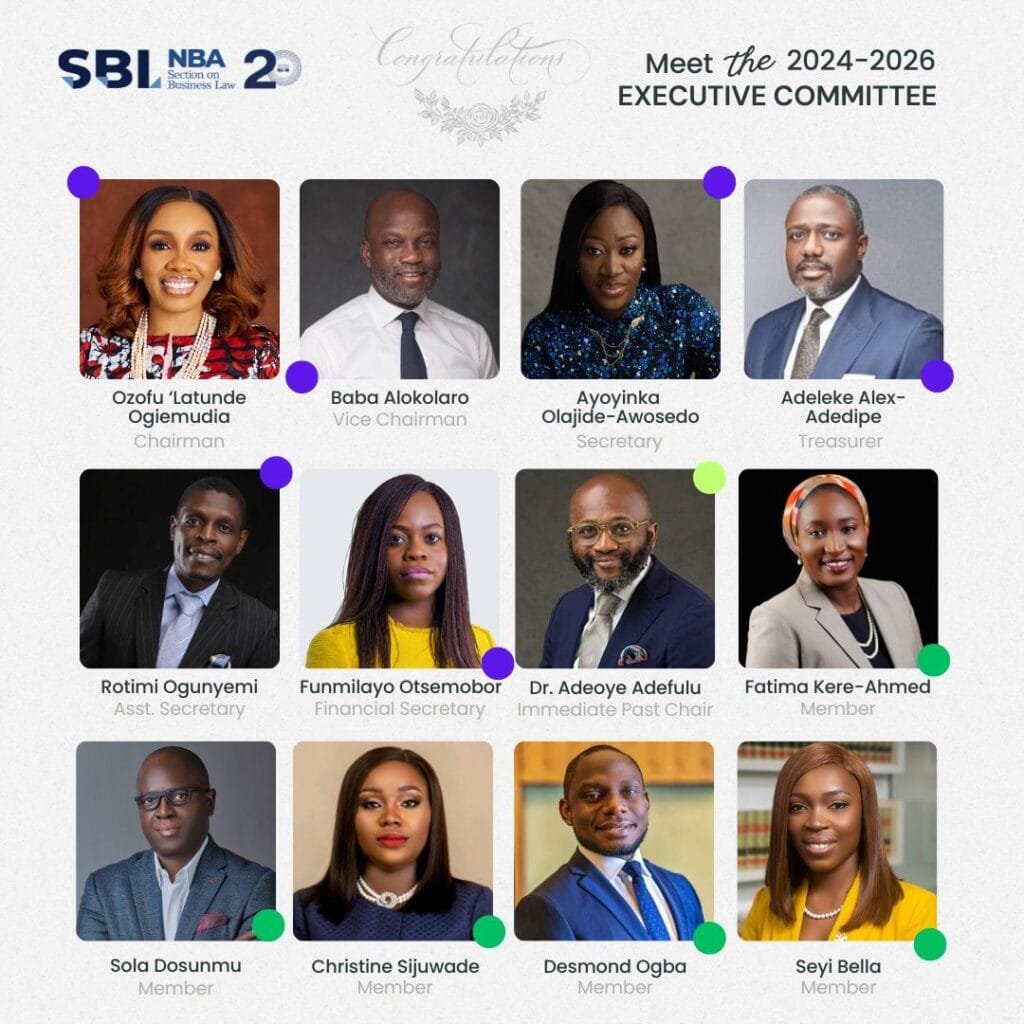 NBA Section on Business Law Announces Resignation and New Appointment of Vice Chair The National Bar Association Section on Business Law (NBA-SBL) announces a significant change in its leadership, due to the resignation of Ms. Aisha Rimi from her role as Vice Chairman. The announcement follows her recent appointment by the President of the Federal Republic of Nigeria, President Bola Ahmed Tinubu GCFR as the Chief Executive Officer/Executive Secretary of the Nigerian Investment Promotion Commission (NIPC). Resignation of Vice Chairman and Legacy of Impact The NBA-SBL bids a respectful farewell to Ms. Aisha Rimi, acknowledging her exemplary service and invaluable contributions to the legal and business community during her tenure as Vice Chairman. Ms. Rimi’s assumption of her new role as the Chief Executive Officer of NIPC is a testament to her commitment to public service and leadership in advancing the interests of the legal profession. Ms. Rimi has agreed to continue supporting the NBA SBL as a member. Appointment of New Vice Chair At its meeting held on the 18th of November, 2023, the Executive Committee of the NBA SBL, in accordance with the provisions of the bylaws of the Section, unanimously elected Mrs. Ozofu Ogiemudia as the new Vice Chair of NBA-SBL. Mrs. Ogiemudia, the immediate past secretary of the 2020-2022 NBA-SBL Council and a distinguished partner at the esteemed law firm of Udo Udoma and Belo-Osagie, assumes this role with a rich background in Mergers and Acquisition transactions, private equity, corporate restructuring and regulatory compliance. Her extensive experience and forward-thinking approach position her as a capable leader to build upon the achievements of her predecessor. The NBA-SBL’s Chairman, Dr. Adefulu, expressed gratitude for Ms. Aisha Rimi’s dedication, wishing her the best in her new position, and welcomed Mrs. Ozofu Ogiemudia to her new role. The NBA-SBL anticipates a seamless transition and remains steadfast in its commitment to promoting excellence and innovation in business law practice.