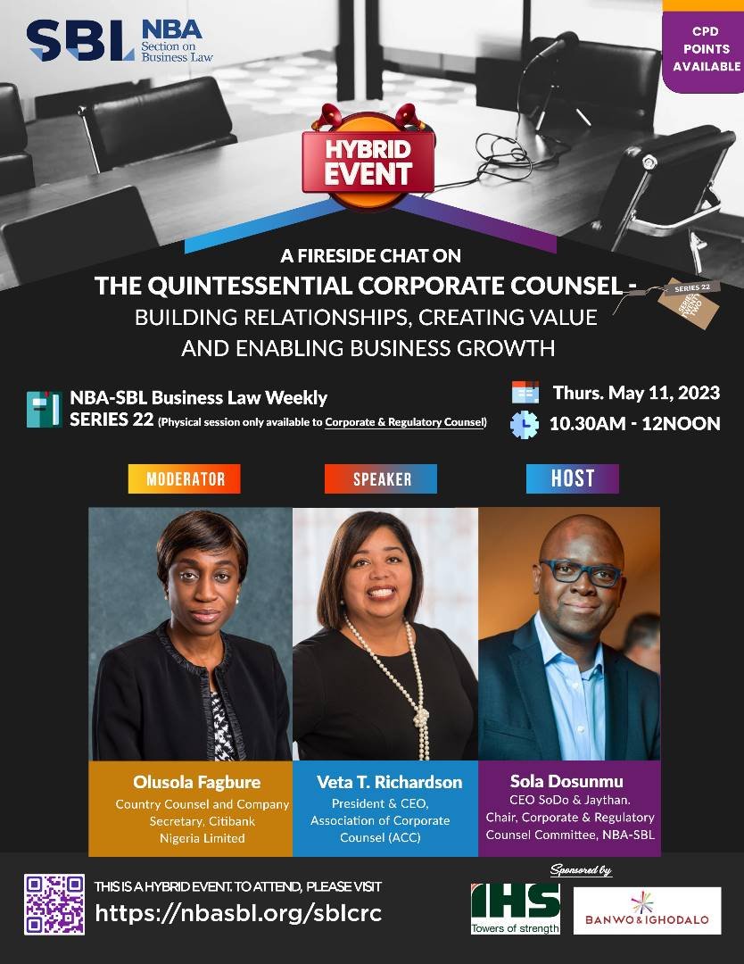 This fireside chat would be a hybrid event on Thursday the 11th of May 2023, from 10:30 AM – 12:00 Noon. Olusola Fabgure, Country Counsel and Company Secretary, Citibank Nigeria Limited will moderate the conversation.